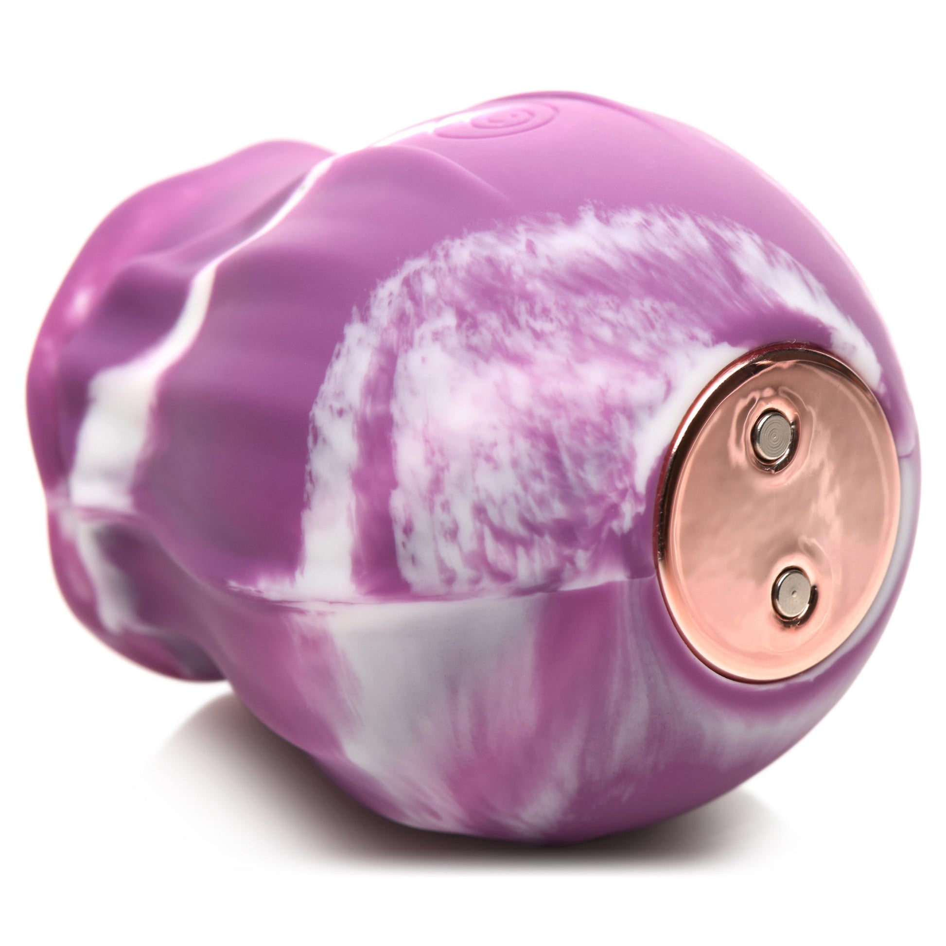 Tickle and tease your fantasies with this marbled, colorful, rose blossom! Bloom into your own personal pleasure with a luscious tongue that parts the petals of this rose to tantalize your little pearl with 3 speeds and 7 modes of licking! Choose your setting with the press of a button and enjoy the powerful motor that makes this rosebud tongue simulate oral pleasure! Get it whenever you want it with an easy to conceal, discrete and pretty pleasure toy! Made out of silky, soft, premium silicone this toy is phthalate-free and body-safe to use with water-based lubricants. Perch it up on the petite charging pad so it stands upright like a decoration while it is recharging until your next urge to give into self-love! After use, simply wash it with warm water and mild soap, then spray with a toy cleaner and wipe dry.